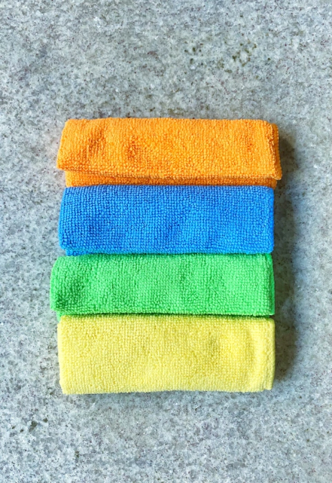 Paños microfibra x 4 U. Diferentes colores para destinarlos a difierentes lugares de la asa. 28 x 28